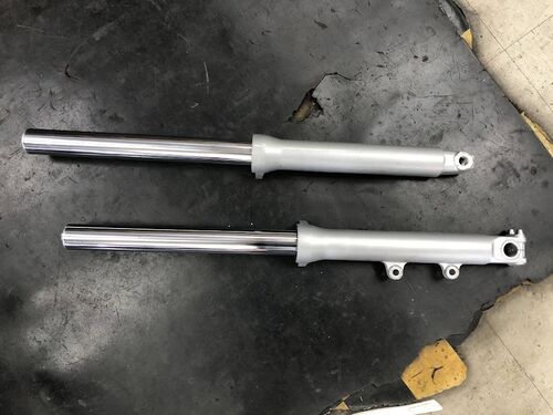 ウルフ250のフォーク単品で持ち込まれました(^^)/ こちらをオーバーホールしまして、今の車体に付いてるフォークと交換します♪ ダストシール付いてないんで、 たぶんレースしている方が使ってたフォークと想像します♪ (フリクションロスの低減) フォークオ…